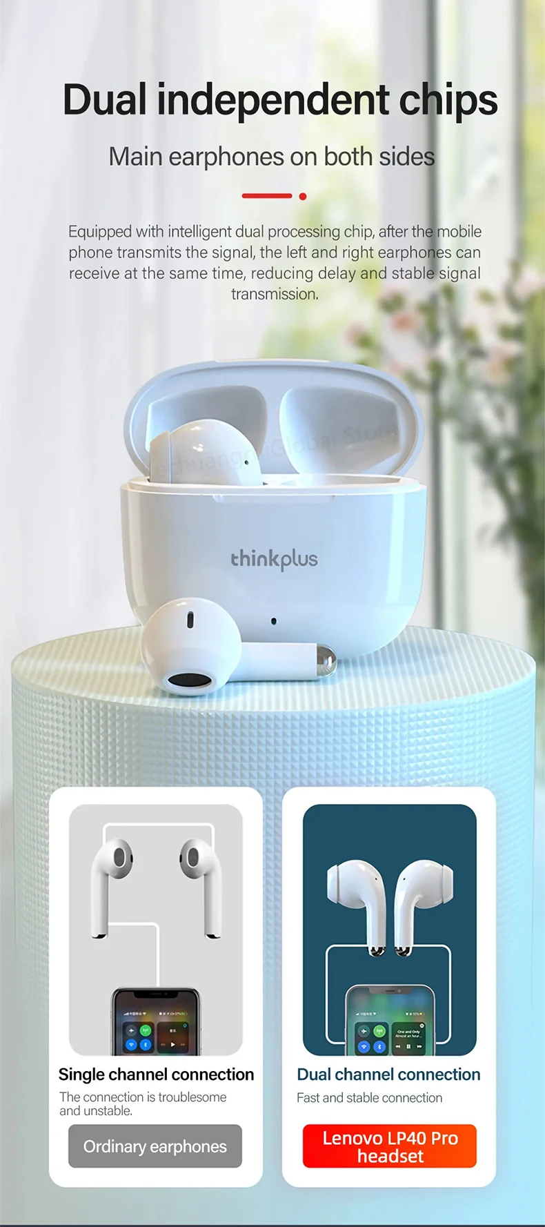 Original LP40 Pro Headphones TWS Wireless Bluetooth Earphones Touch Control Sport Headset Stereo Earbuds for Android Ios